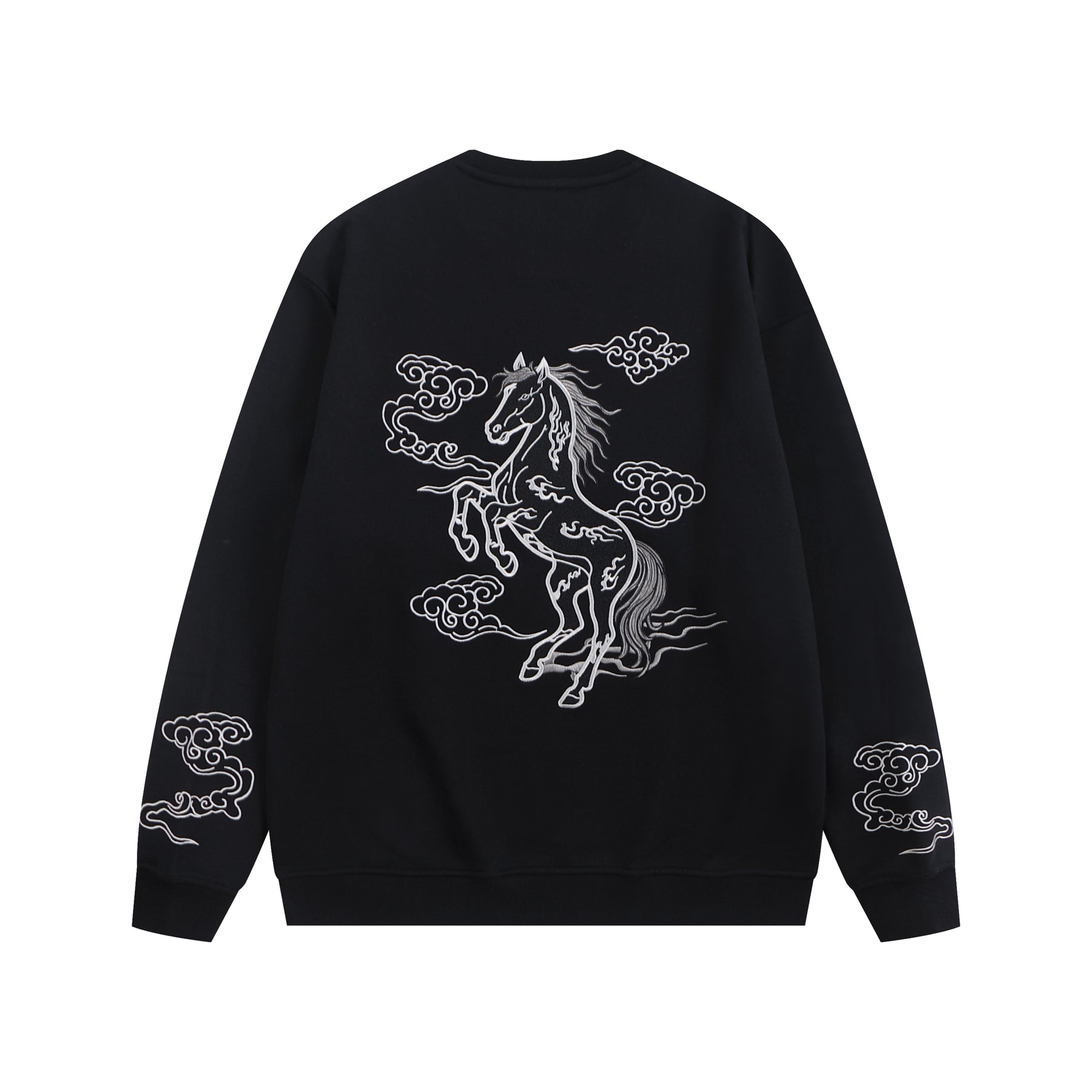 Embroidered Midnight Fire Horse Crewneck (Oversized) - Black