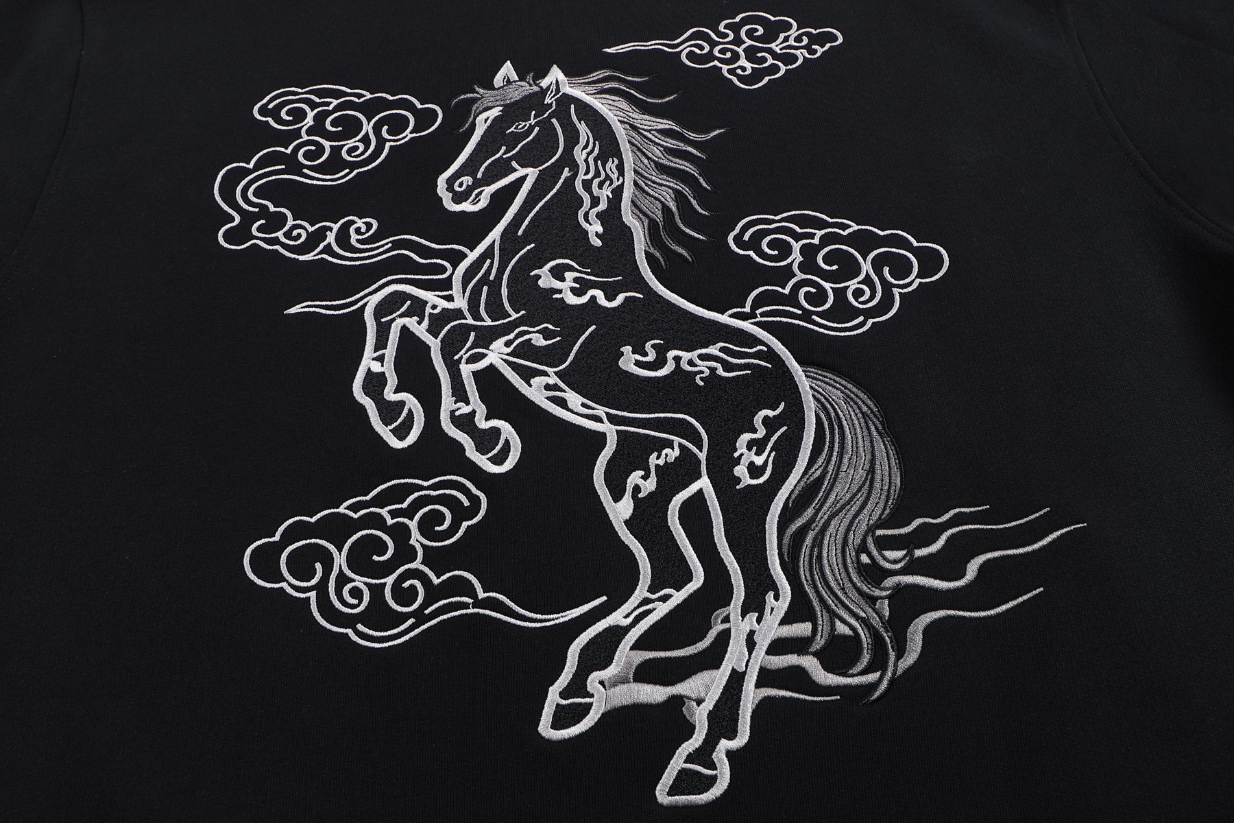 • Embroidered midnight fire horse design on the back