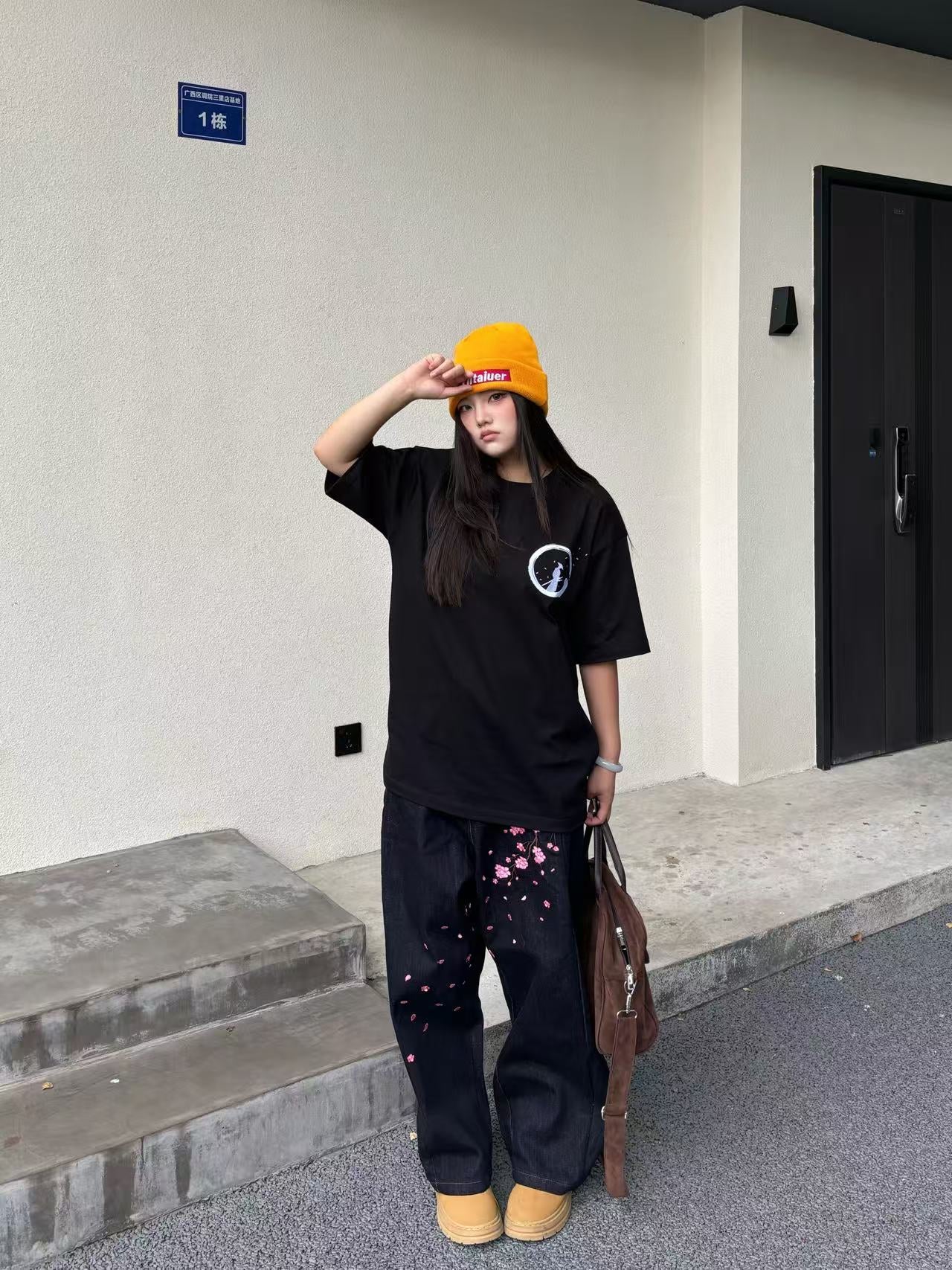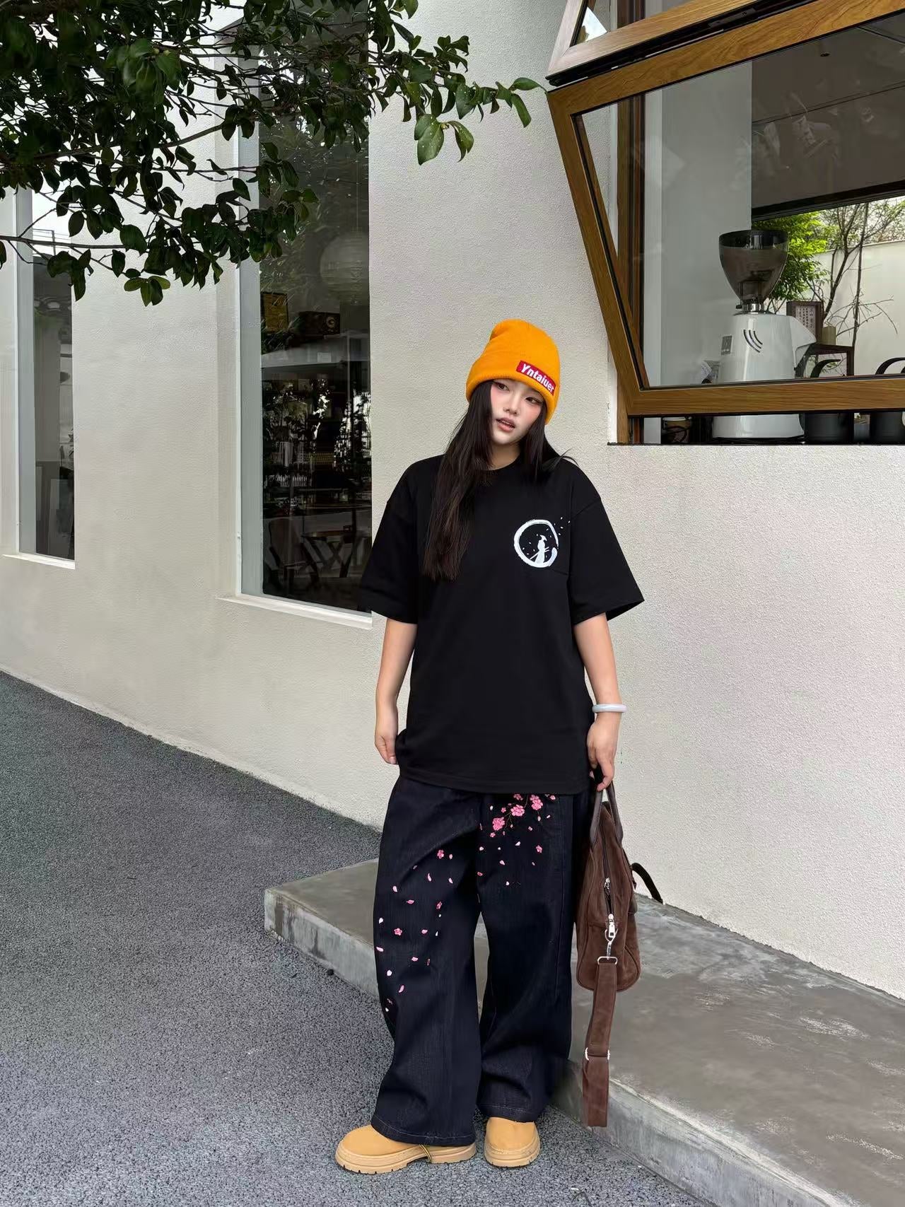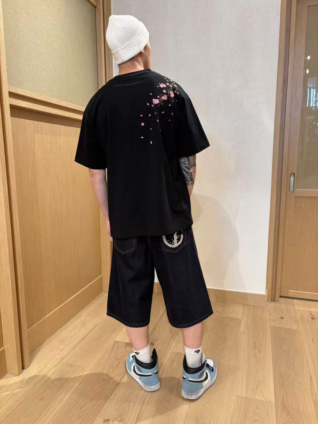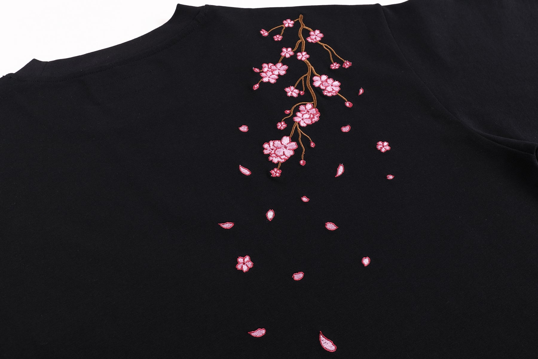 Embroidered Eternal Bloom T shirt (Oversized) - Black